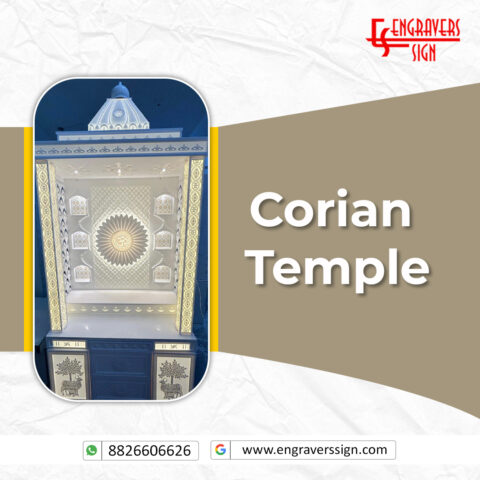 Engravers Sign offers premium Corian Temple designs with elegant finishes and intricate detailing. Their temples are crafted for homes and offices, combining style with spiritual ambiance. Using high-quality Corian material, they ensure durability, smooth surfaces, and easy maintenance. Engravers Sign customizes each temple to client specifications, resulting in unique, visually appealing, and sacred spaces that enhance interiors and provide a serene environment for prayer.