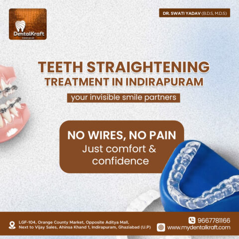 Teeth straightening treatment in Indirapuram helps improve alignment and overall dental aesthetics. Dental Kraft provides modern orthodontic techniques tailored to patient's needs with expert supervision. The clinic focuses on comfort, accuracy, and consistent monitoring for effective results. Choosing teeth straightening treatment in Indirapuram at Dental Kraft ensures long-term dental health, improved function, and a confident, well-aligned smile through professional orthodontic care.
